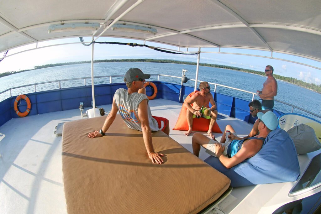 Safety Protocols: In the event of an emergency, inclement weather, or any other situation deemed necessary by the captain or surf guide, the boat may remain anchored in a bay or protected area for the required period of time. The safety of our guests is our top priority. Please note that no refunds will be issued for missed surfing sessions due to weather conditions.